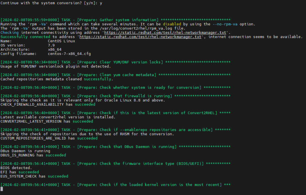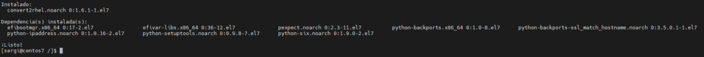 Ejecutamos la utilidad ya que le hemos dado los datos necesarios, al crear el fichero /etc/convert2rhel.ini